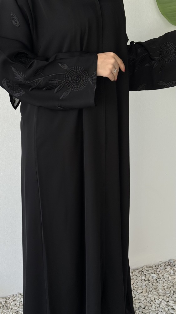 عبايه هاديه وناعمة وعمليه مطرزة من الاكمام